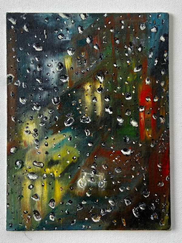 4 * 4 inches Oil on cavas. Kingfisher catches fish came out so realistic. This painting is ready to hand with canvas board.