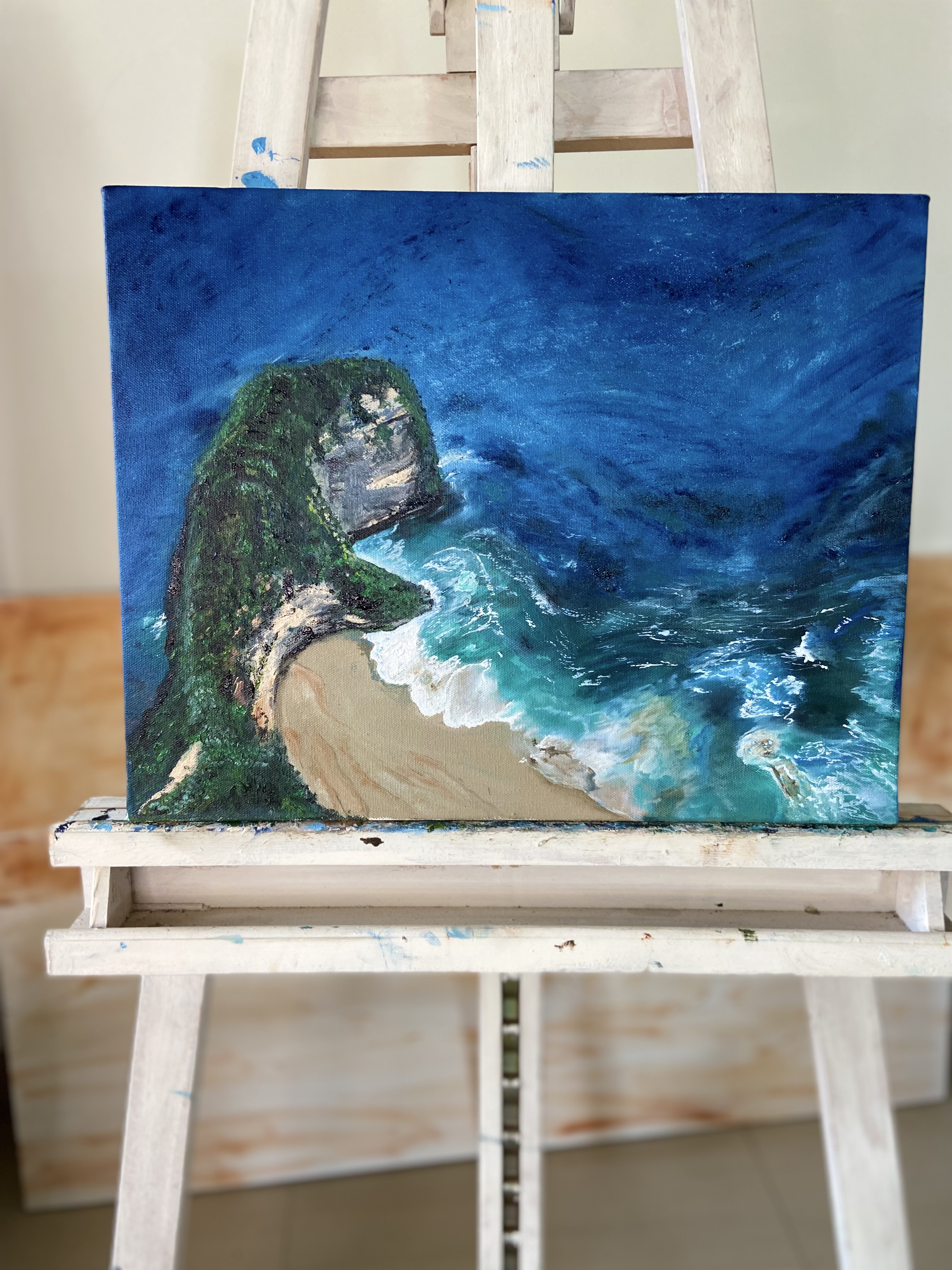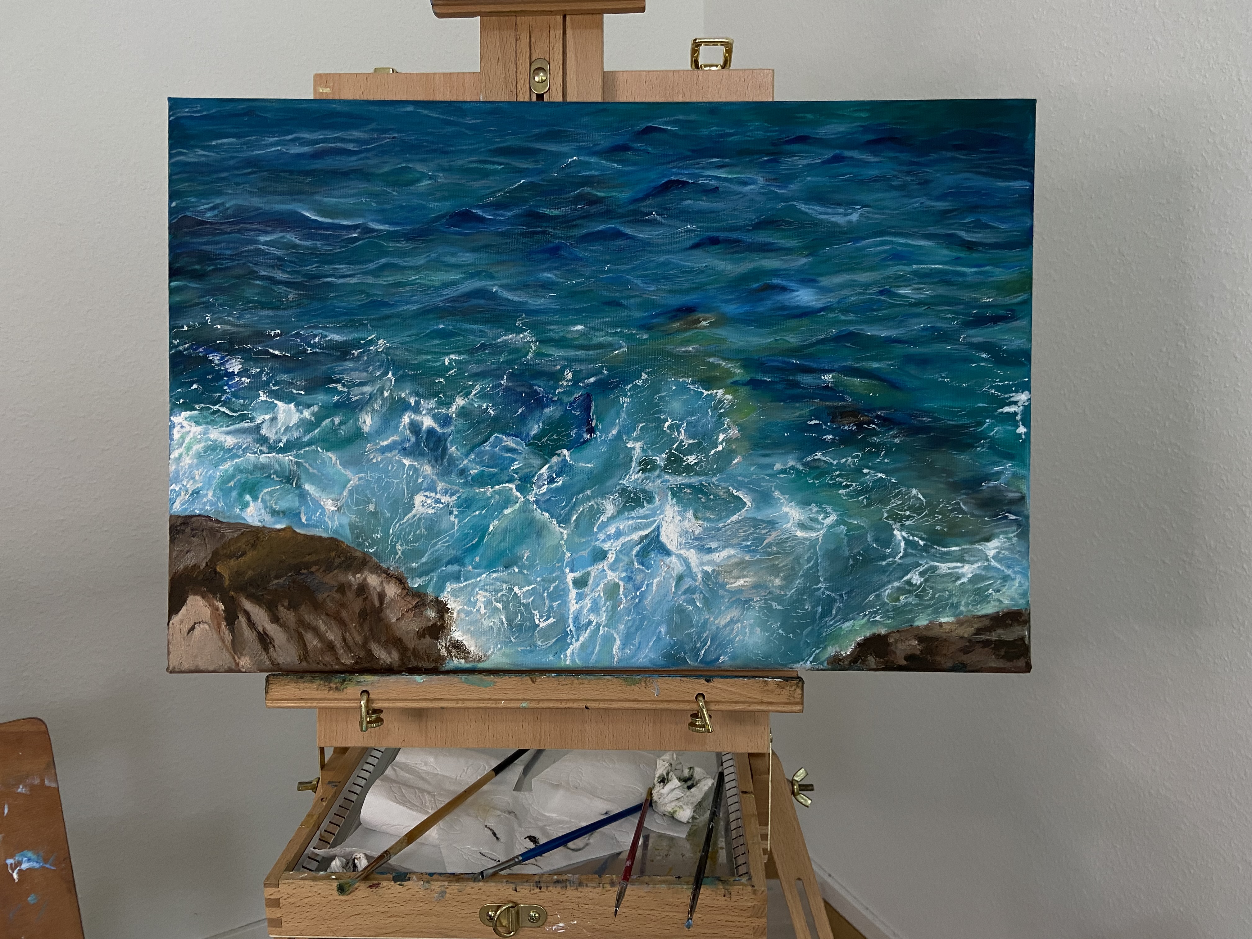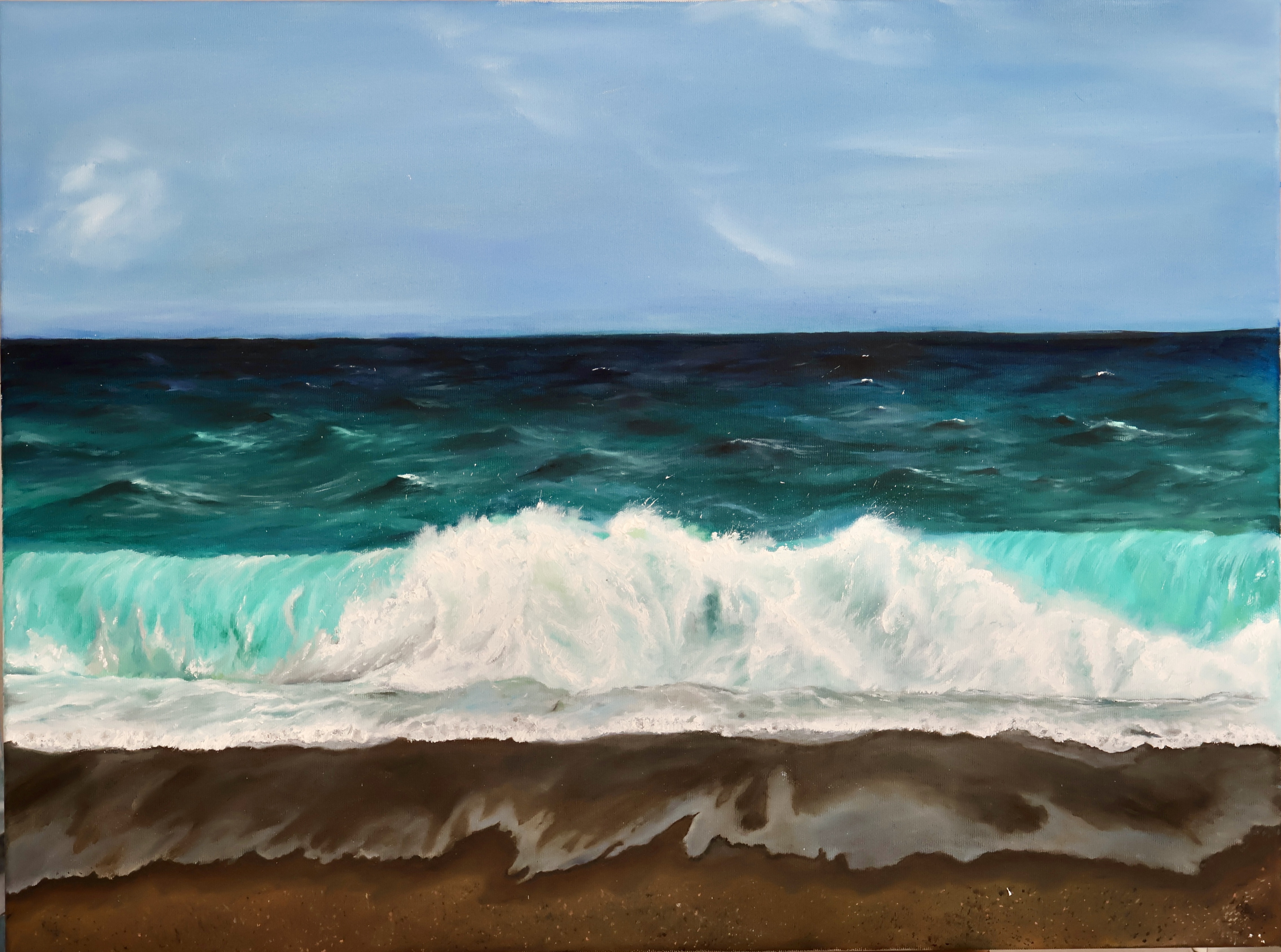20 by 30 Oil on canvas . One can feel the depth of water in this painting. many small waves crashing and makes big wave. I hope you all like it .